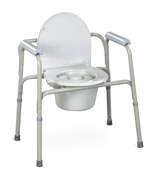 浴室外使用的便桶。具有按扣式座椅和盖子、防溅罩、可拆卸靠背和