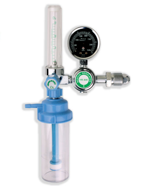 一个压力O2调节器is a controlvalvethat reduces the input pressure of a fluid to a desired value at its output. Regulators are used for gases and liquids, and can be an integral device with an output pressure setting, a restrictor and a sensor all in the one body, or consist of a separate pressure sensor, controller and flow valve.